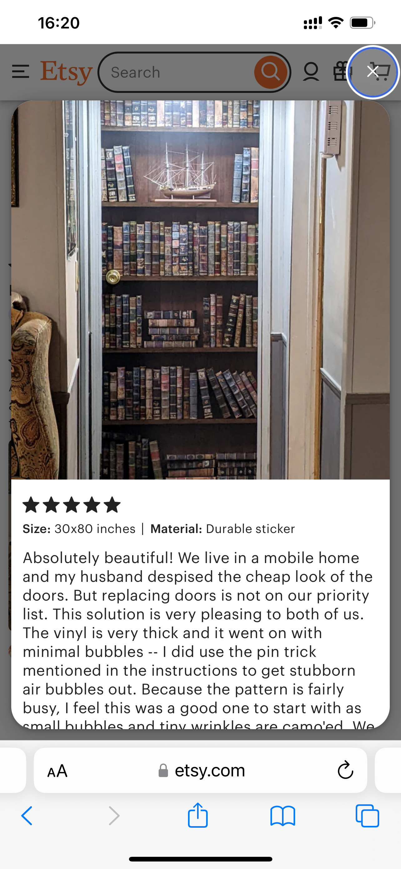 Lovely mural. Does just the job, and saved me from carving up old books to create this look. Helpful seller and good communication. Highly recommended.
