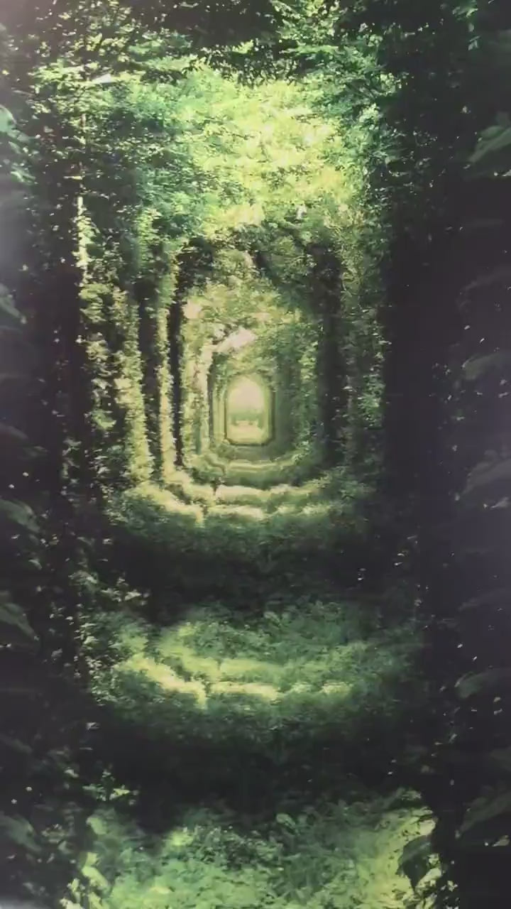 Forest green tunnel, rabbit hole, Wonderland door sticker mural, self-adhesive, single piece