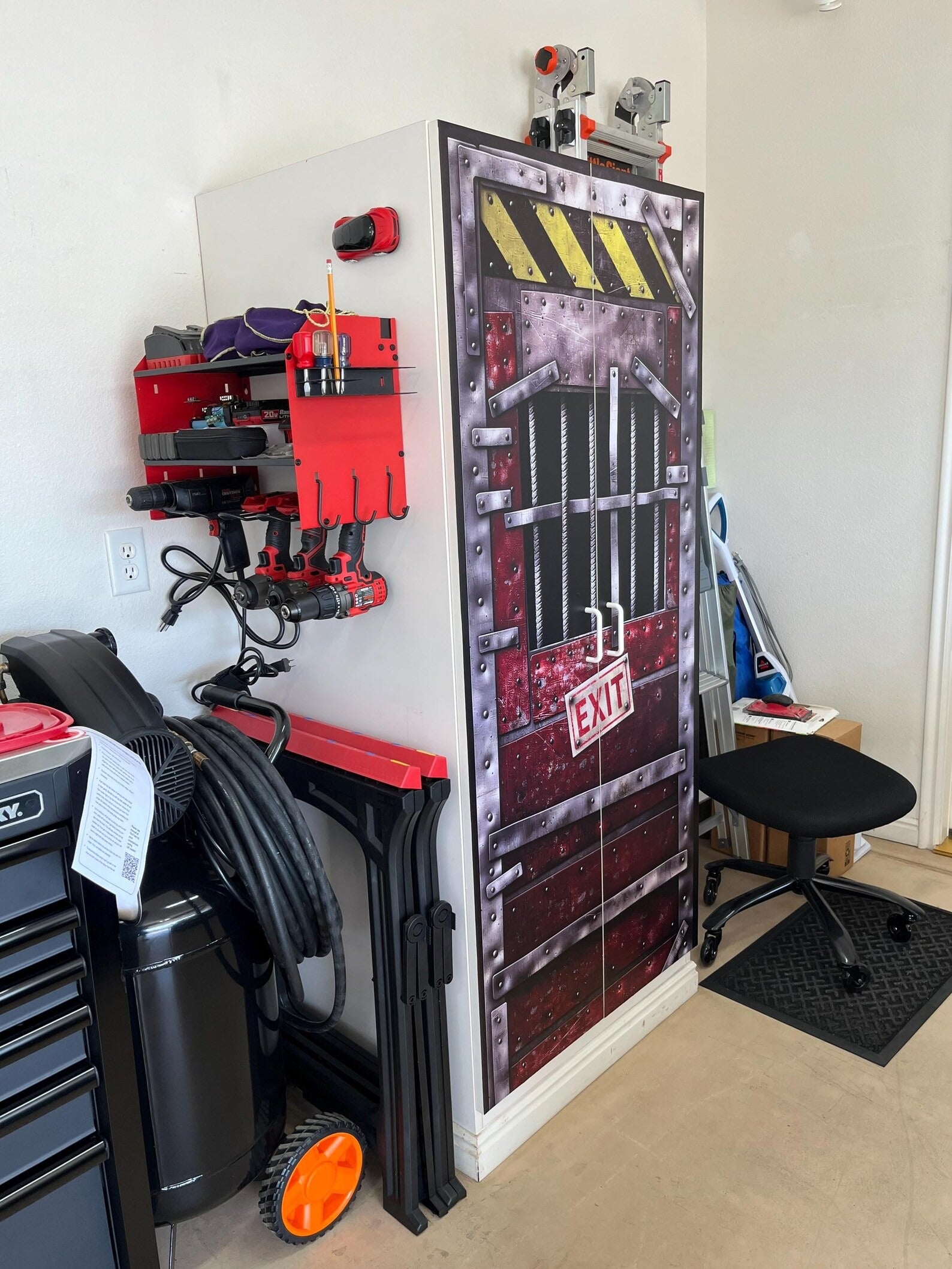Whole door wrap. Gamer's Safe House Exit door wrap mural. Self-adhesive. Single piece. Made in Europe. High definition print.