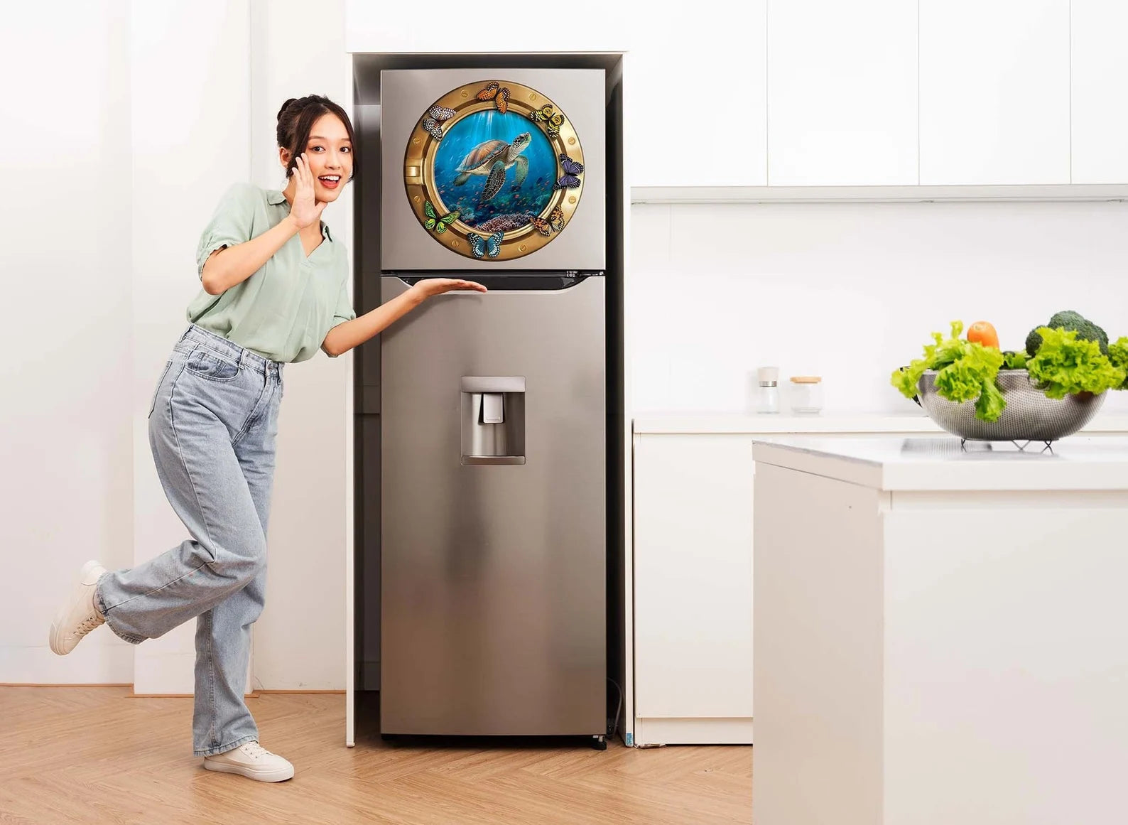 Turtle in Ocean, Underwater Life, Porthole fridge, door sticker, self-adhesive, single piece