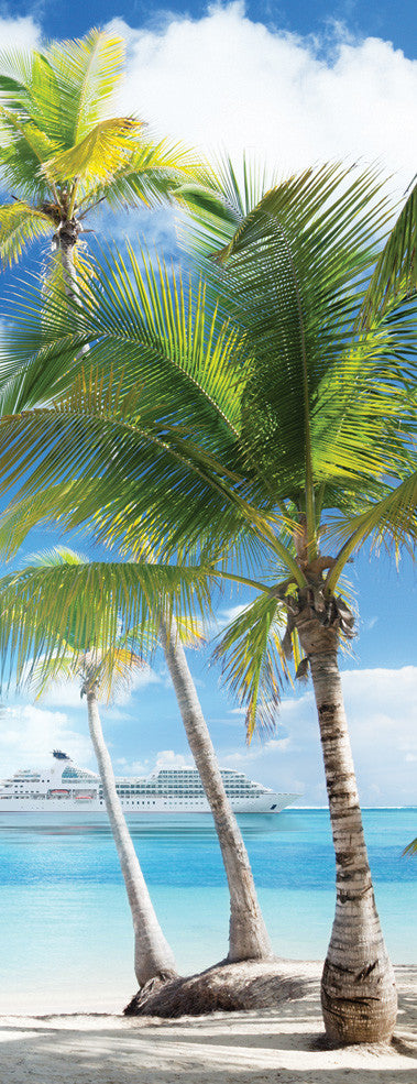 Beach seaside, palms, sea door sticker, mural,, wrap, skin, cover, decal, wall art.