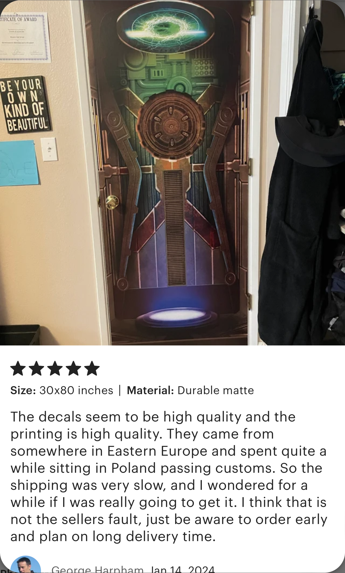 Size. Full door size mural, single piece (no need to line up).