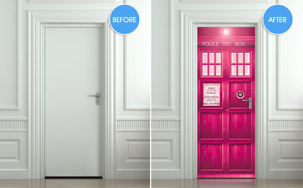 Door STICKER PINK Police box magical mural decole film self-adhesive poster. Refrigerator sticker cover.